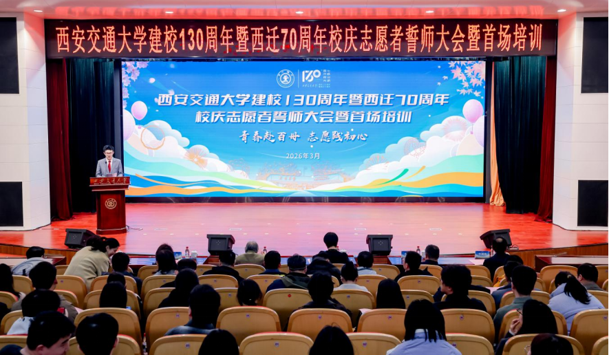 百卅辉光映初心,七秩西迁薪火传。2026年3月4日,恰逢第63个学雷锋纪念日来临之际,西安交通大学建校130周年暨西迁70周年校庆志愿者誓师大会暨首场培训在兴庆校区主E多功能报告厅顺利举行。校党委副书记王欢,西迁老同志代表胡奈赛教授,学工部、研工部、团委、校庆专班办、博物馆及各书院、学院(部、中心)有关负责同志出席。活动以“青春赴百卅 志愿践初心”为主题,首批校庆志愿者代表齐聚一堂,既是校庆志愿服务的集结令,更是交大学子传承西迁精神、践行志愿担当的宣言会。