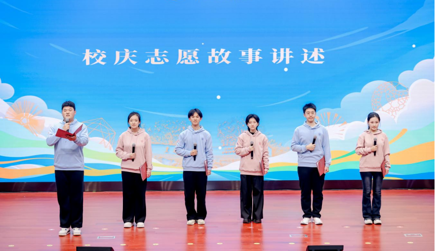 志愿微光,可聚星河。6位志愿者代表依次分享了自己的专属校庆志愿服务故事:从对接全球校友的双向奔赴,到排演校庆话剧的精神洗礼;从跨校传递热爱的温暖瞬间,到筹备校友活动的细致服务;从寻访校友的时空对话,到新生传承温暖的饮水思源,他们在校园内外、线上线下,都用自己的方式奉献着,以最饱满的热情、最专业的素养、最扎实的作风感染着身边的伙伴们。