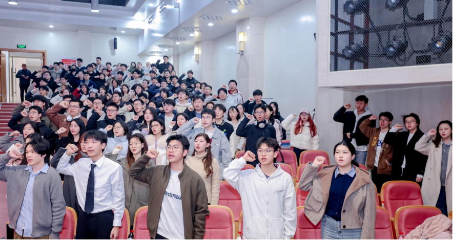 誓言铿锵,初心如磐。在各工作组志愿者代表的领誓下,全体志愿者肃然起立,高举右拳庄严宣誓:“承西迁之魂,赴校庆之约,服从安排、认真负责,专业严谨、热忱服务,心怀热爱、主动担当,真诚理解、互帮互助。请母校放心,志愿有我!请交大放心,奋进有我!”洪亮的誓言响彻报告厅,彰显着新时代交大学子的责任与担当。