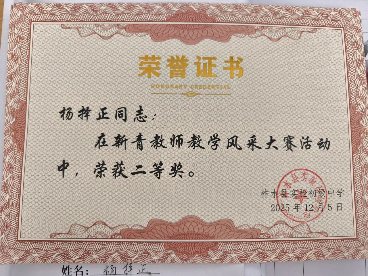 杨择正荣获二等奖