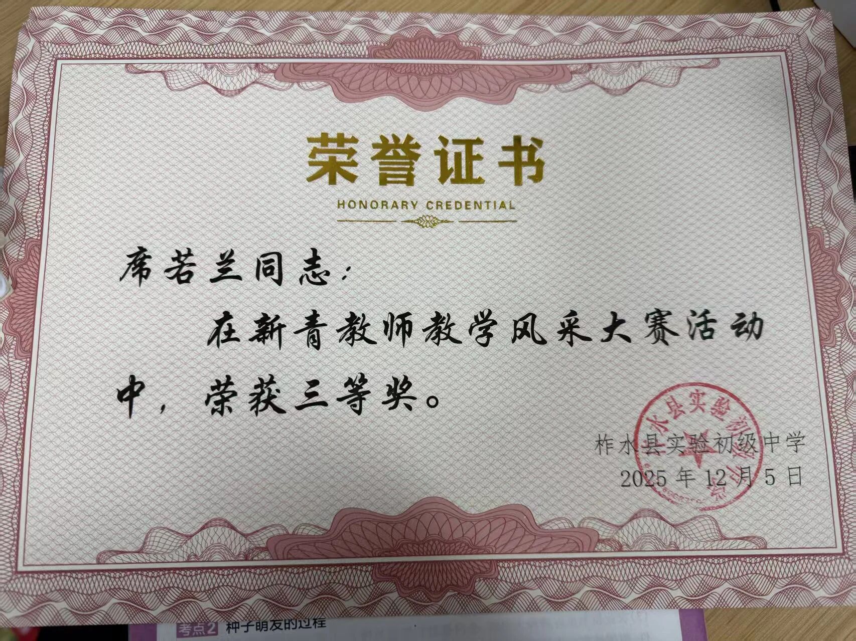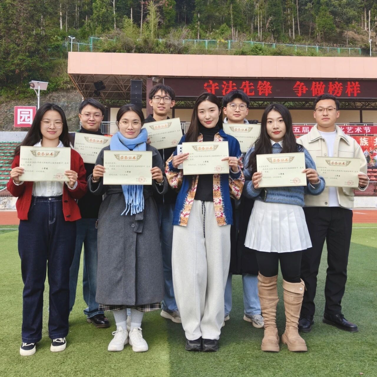 教育从来不是单向的给予,而是双向奔赴的成长。在教学中,为了适配学生的学习基础,我不断打磨教学方法,在点滴探索中收获教学能力的提升;而学生们眼中的求知光芒、质朴的温暖,也治愈着我前行的疲惫,让我读懂坚守的意义。教学相长,互相治愈,这份荣誉是鼓励,更是责任,未来我会以行践知,深耕课堂,与屏边一中的学生们并肩同行。