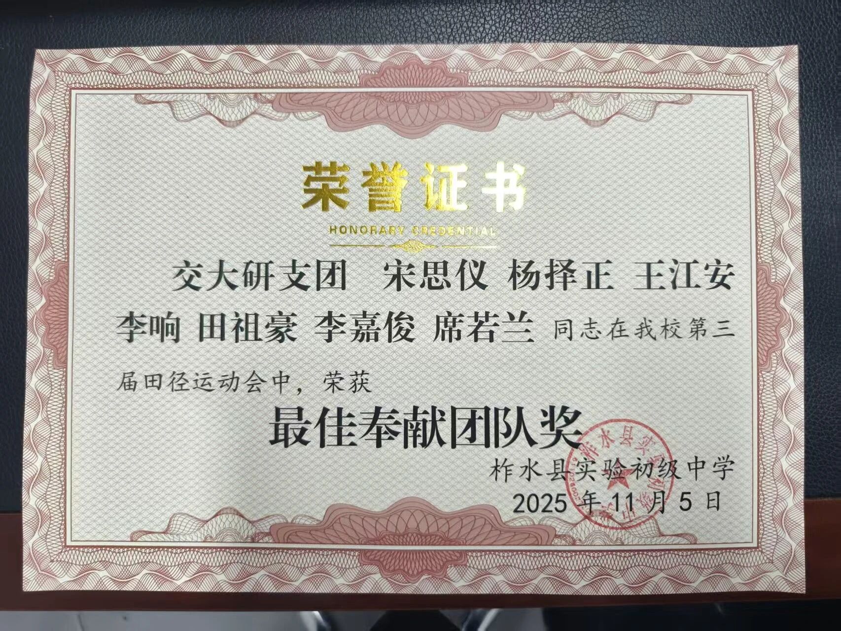 团队荣获“最佳奉献团队奖”