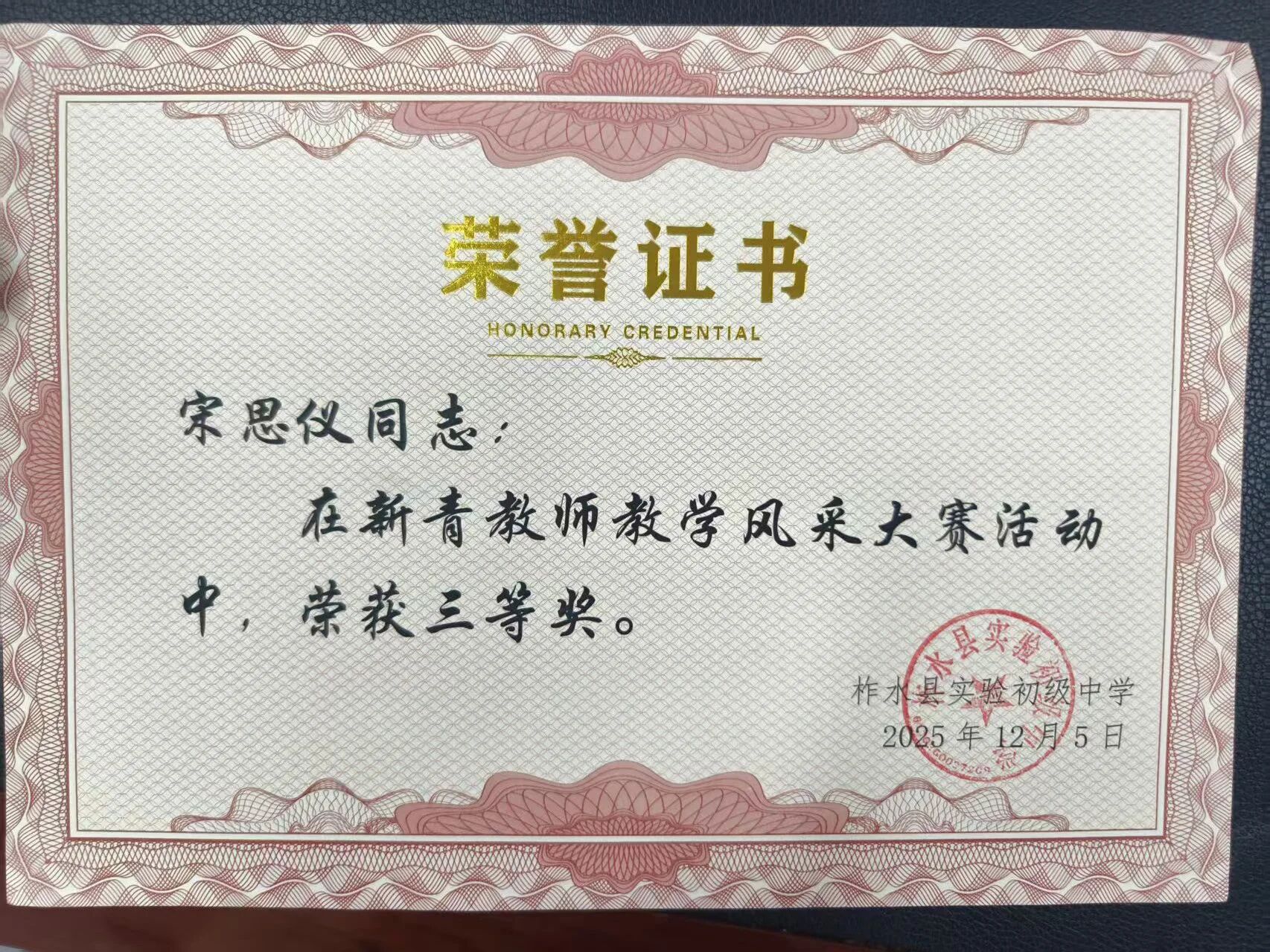 荣获三等奖